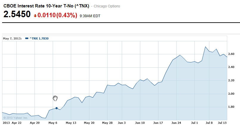 In bonds, there has been a major re-pricing based upon the Fed removing or slowing down stimuli.  The ten year treasury went from a yield of 1.7% all the way up to over 2.7%, which is an incredibly big move for bonds.